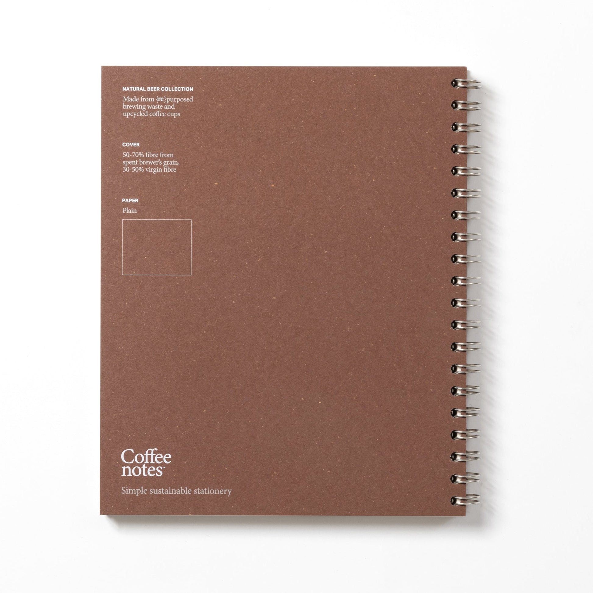 Our top selling Wirebound Notebooks are plastic free, and sustainably made from {re}cycled coffee cup paper. The beautifully minimal covers are made from {re}purposed beer waste.