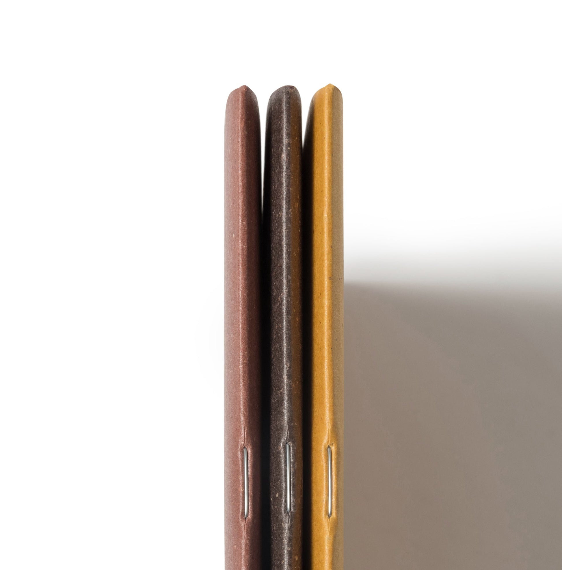 Pack of three sustainable notebooks made from {re}cycled coffee cup paper and {re}purposed beer waste. Printed in plain, lined and dotted. Ale (plain), Pils (lined), Bock (dotted). Cheers!