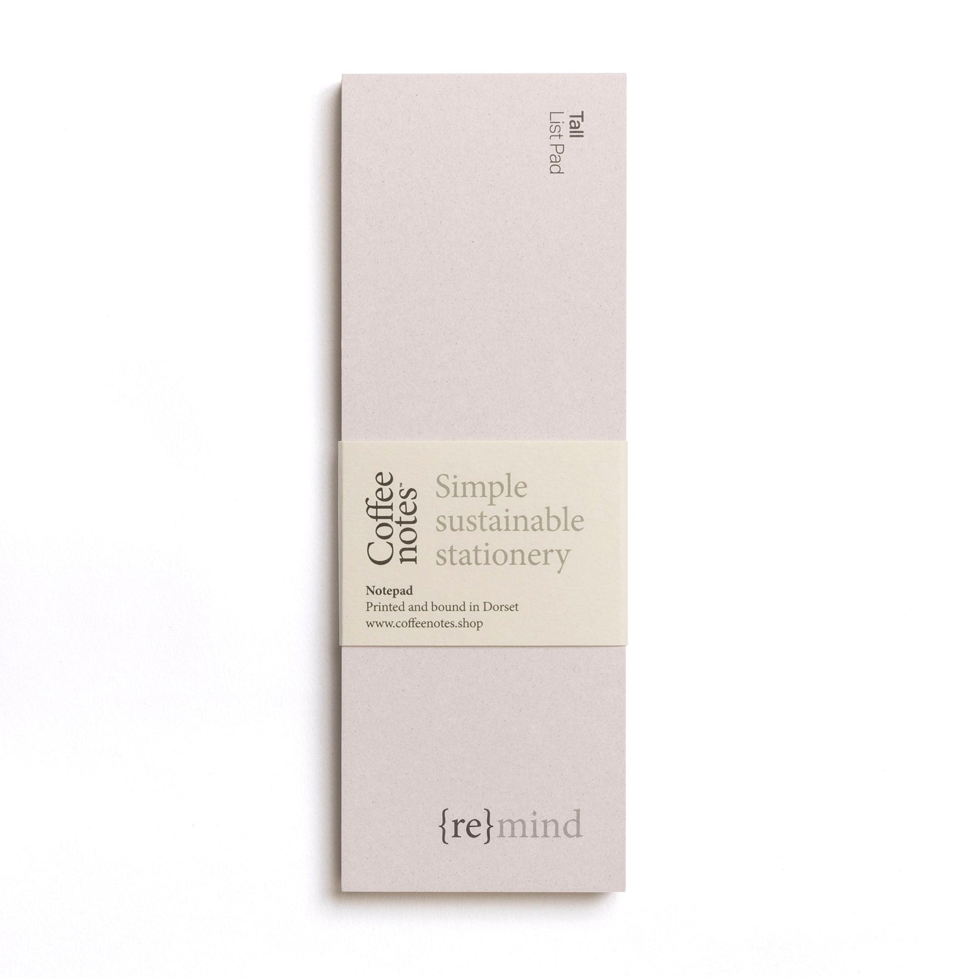 A sustainable list pad made from {re}cycled coffee cup paper and {re}purposed fruit waste. Ideal for 'to do' or shopping lists at home or the office.