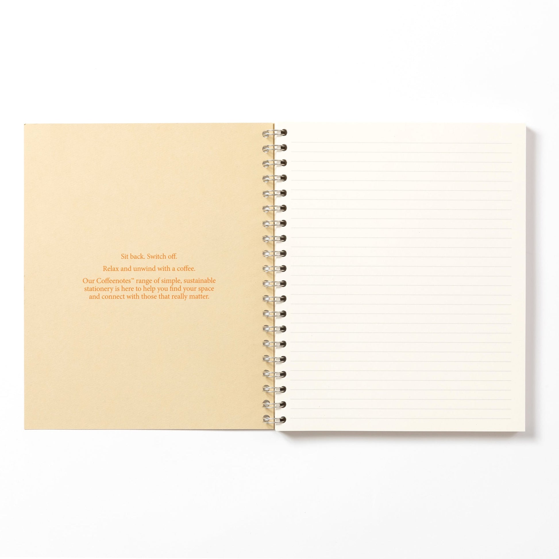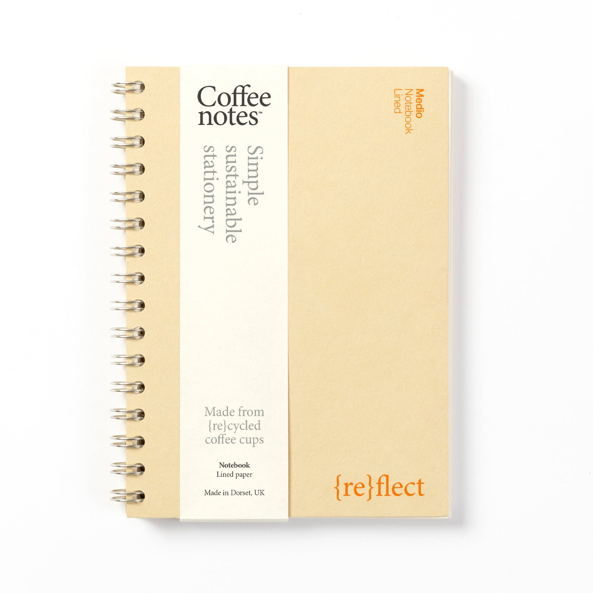 Our top selling Wirebound Notebooks are plastic free, and sustainably made from {re}cycled coffee cup paper. The beautifully minimum covers are made from 100% {re}cycled fibres.