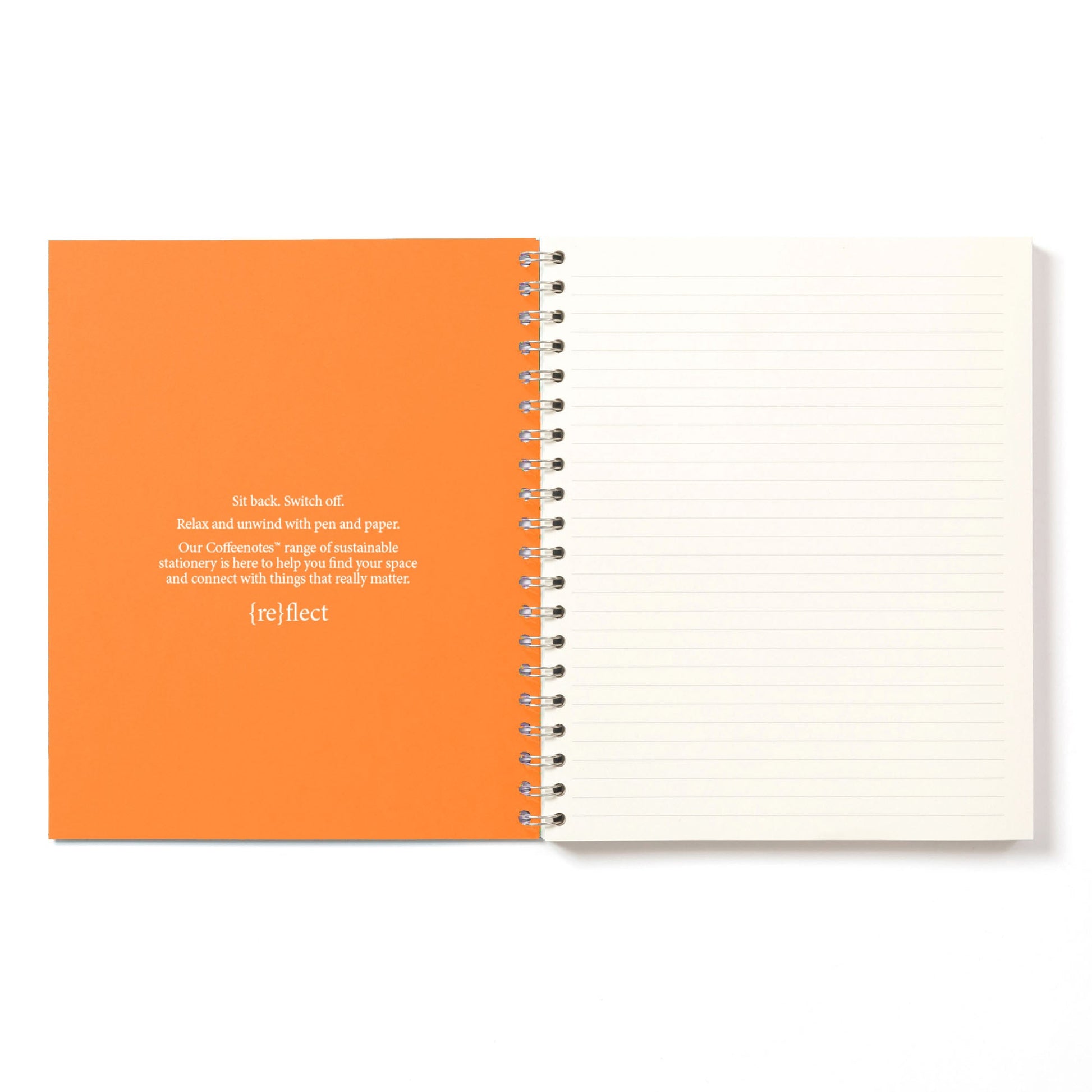 Our top selling Wirebound Notebooks are plastic free, and sustainably made from {re}cycled coffee cup paper. The beautifully minimal covers are made from a mixture of {re}cycled and FSC fibres.