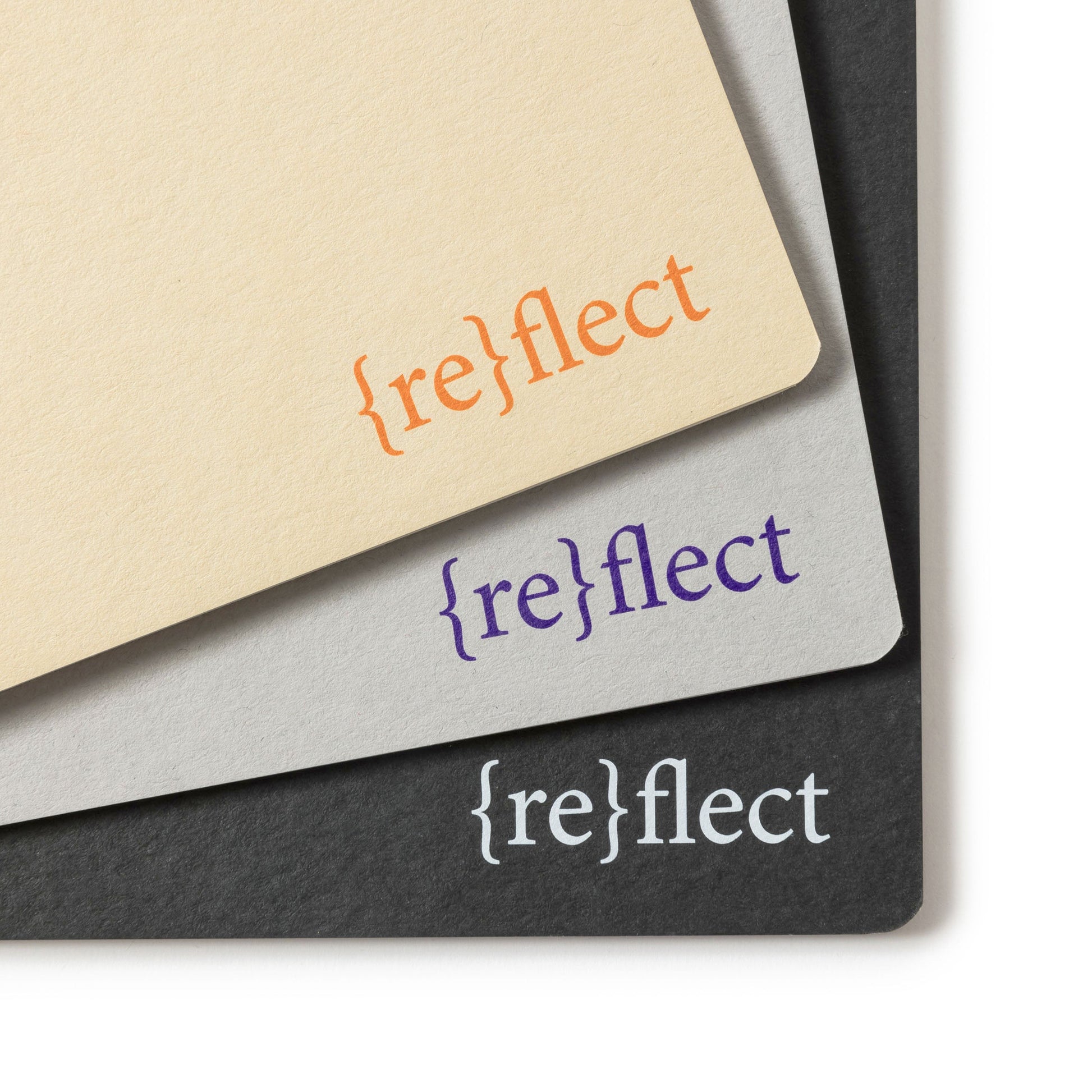 Saddle stitch binding with rounded corners from {re}cycled coffee cup paper and 100% {re}cycled fibres.